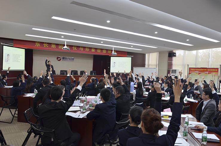 圖為:公司外聘高級禮儀培訓講師唐小婉為員工進行《禮儀與形象塑造培訓》